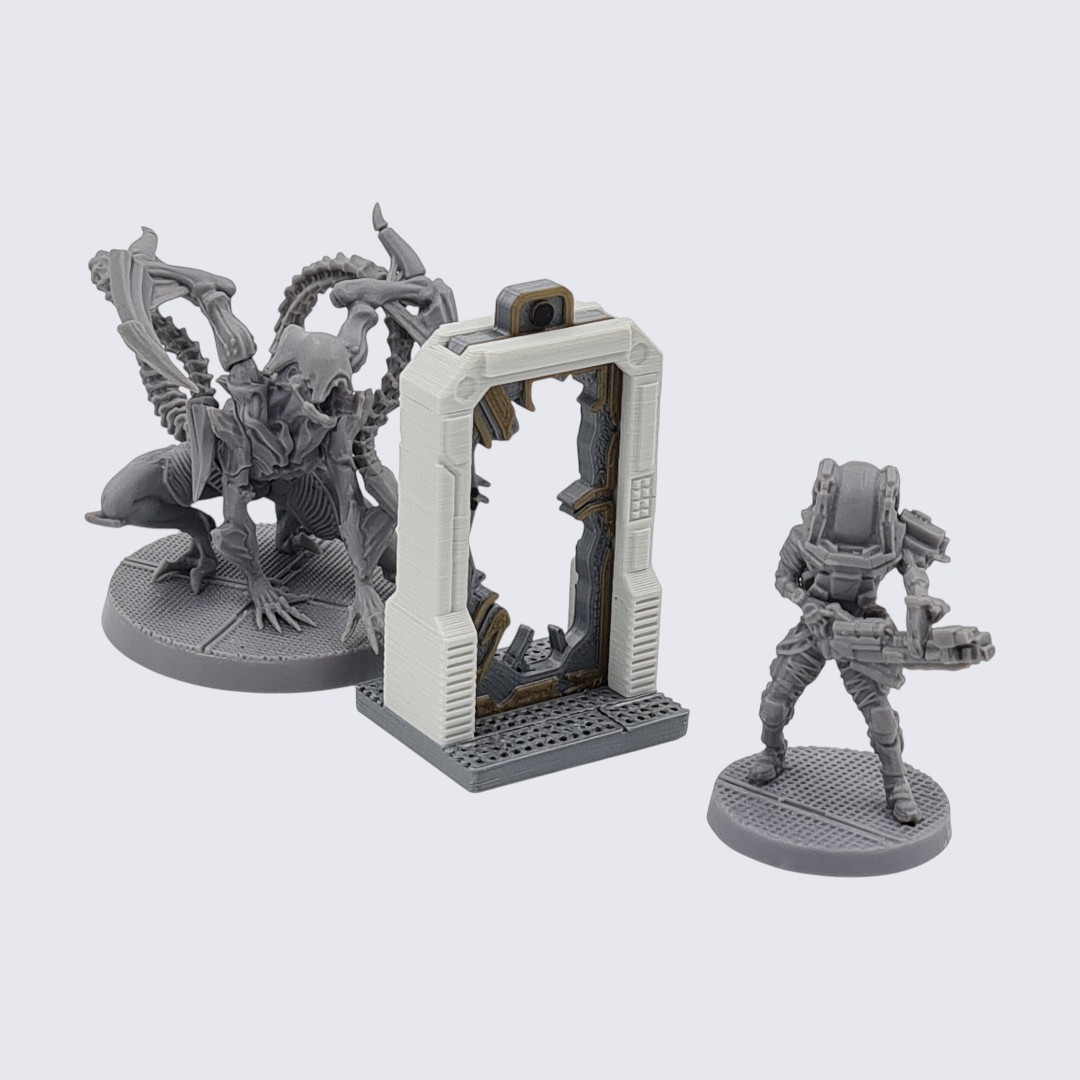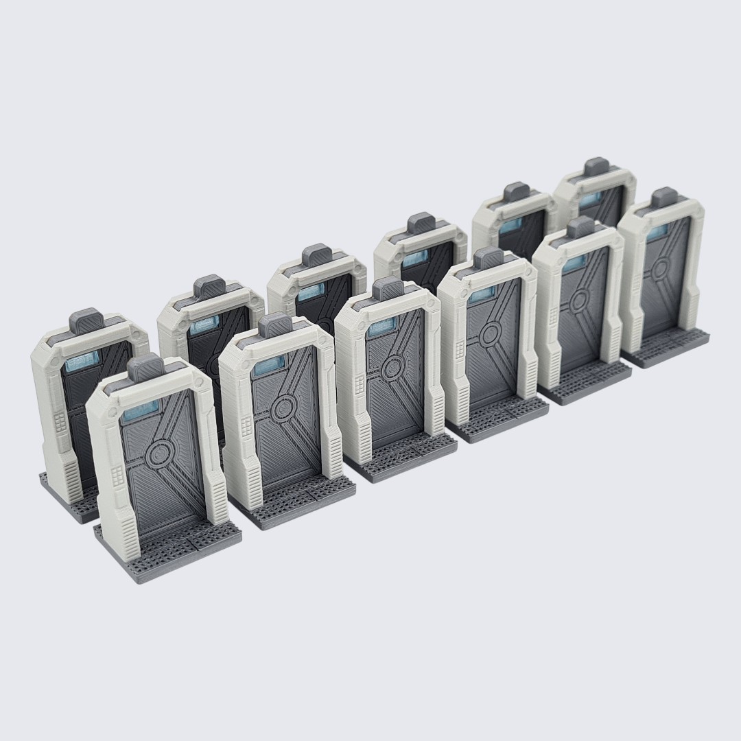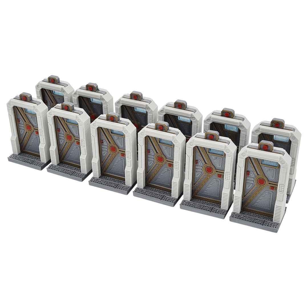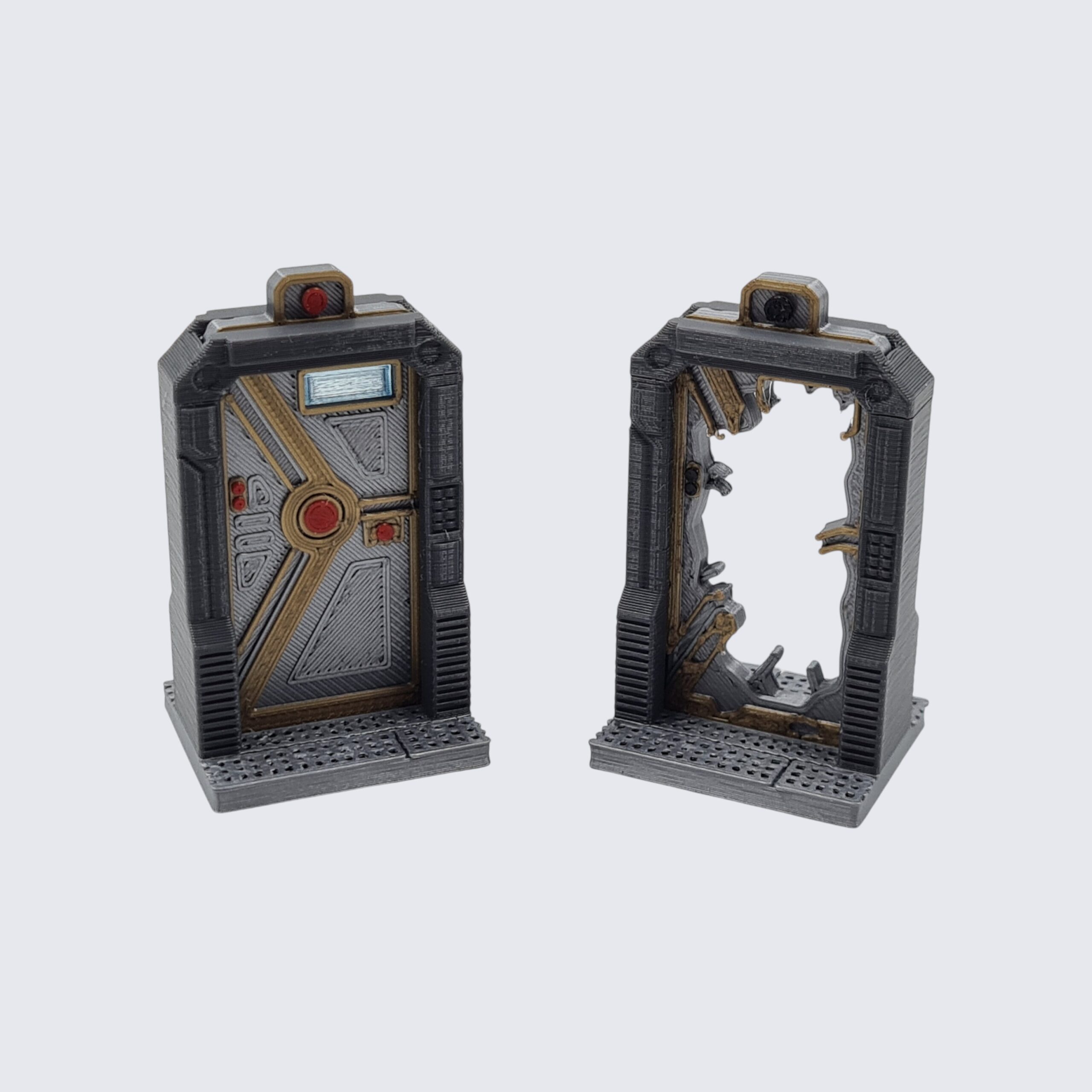 12 individual 3D Printed Nemesis Doors are supplied including both intact and damaged door inserts.