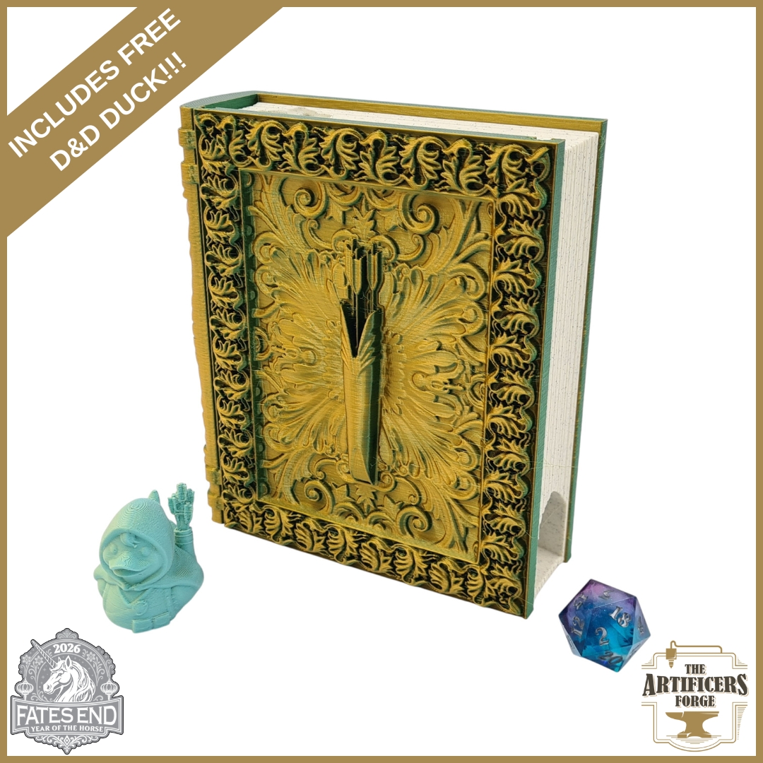 This highly detailed Ranger Tome, inspired by the Ranger D&D Class, is designed by the talented Fates End Studios and brings a striking addition to your gaming table whilst ensuring fair and random dice rolls every time. The clever design allows the inside ‘pages’ to slide out revealing dice trays and storage compartments!