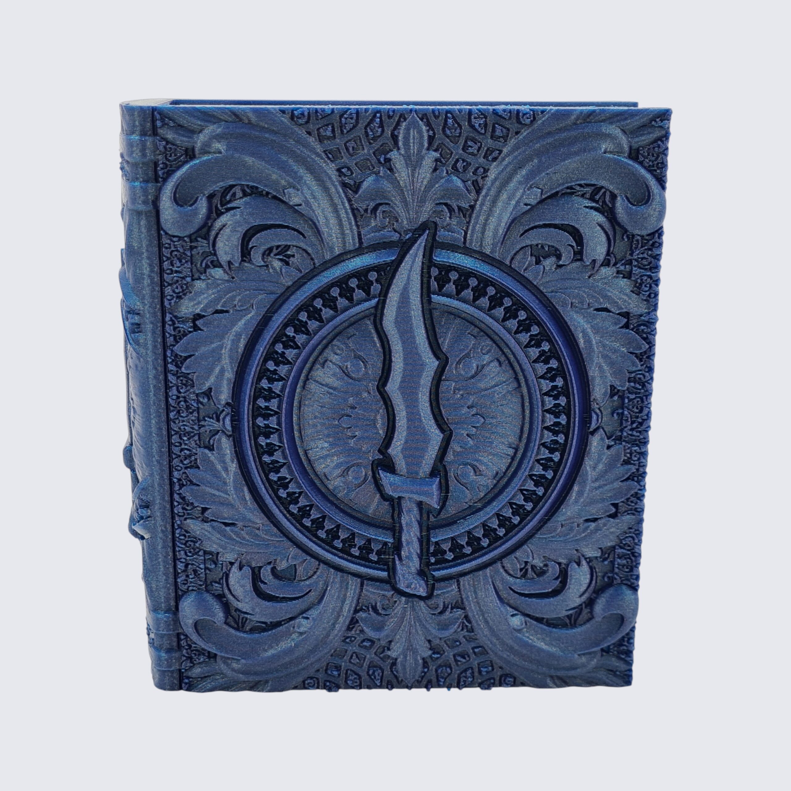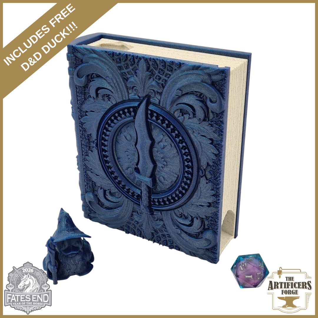 This highly detailed Rogue Tome, inspired by the Rogue D&D Class, is designed by the talented Fates End Studios and brings a striking addition to your gaming table whilst ensuring fair and random dice rolls every time. The clever design allows the inside ‘pages’ to slide out revealing dice trays and storage compartments!
