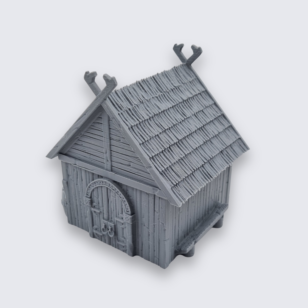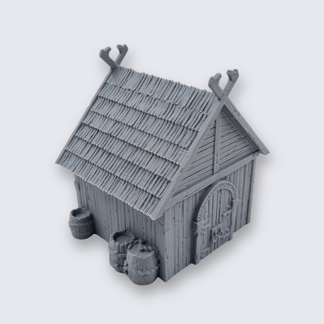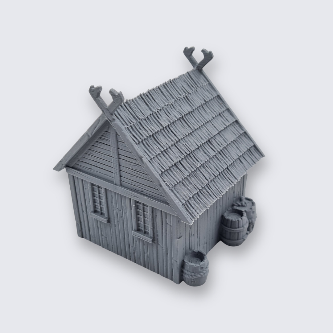 Create immersive Medieval themed battlefields with this 3D printed Village Of Middle Earth House wargaming terrain piece.