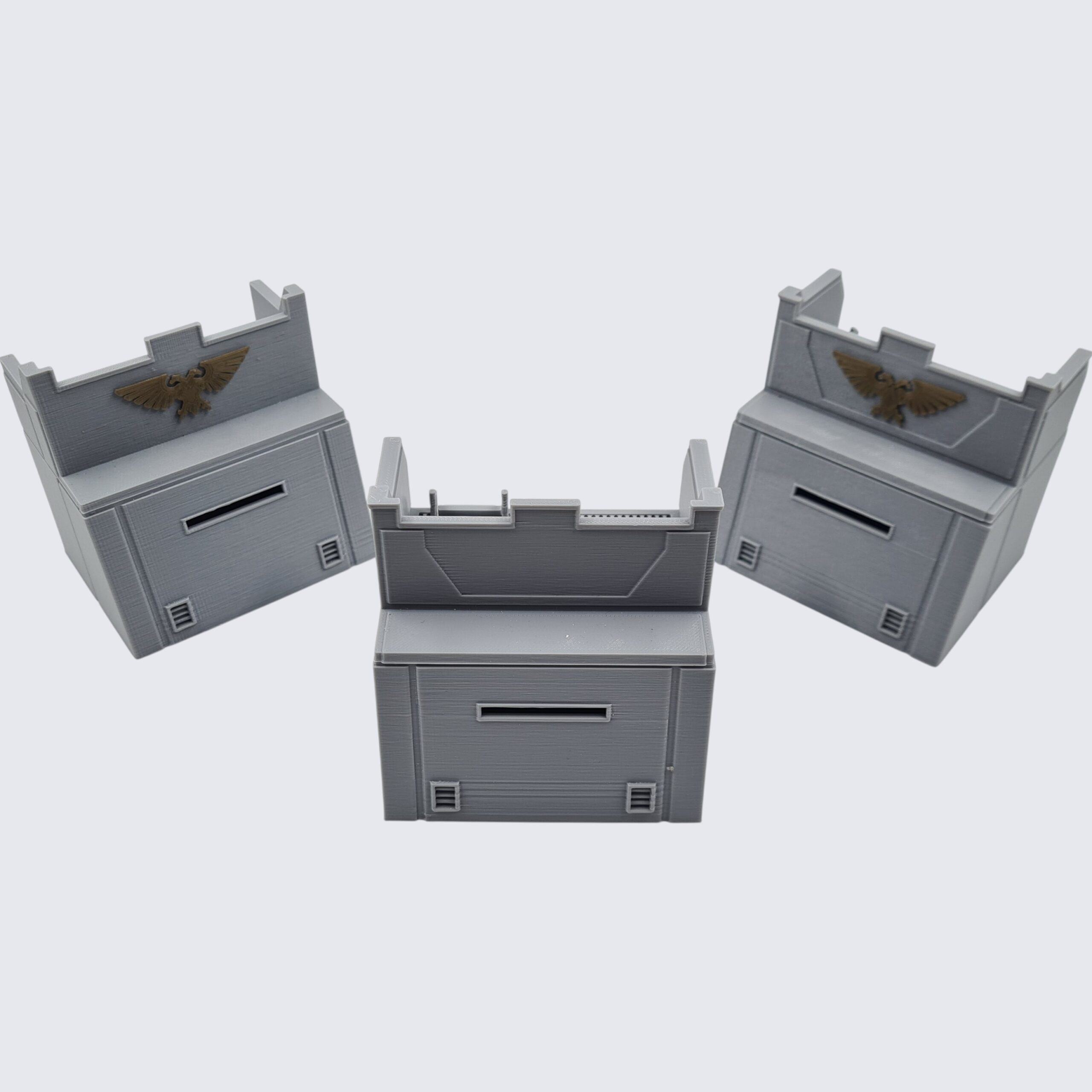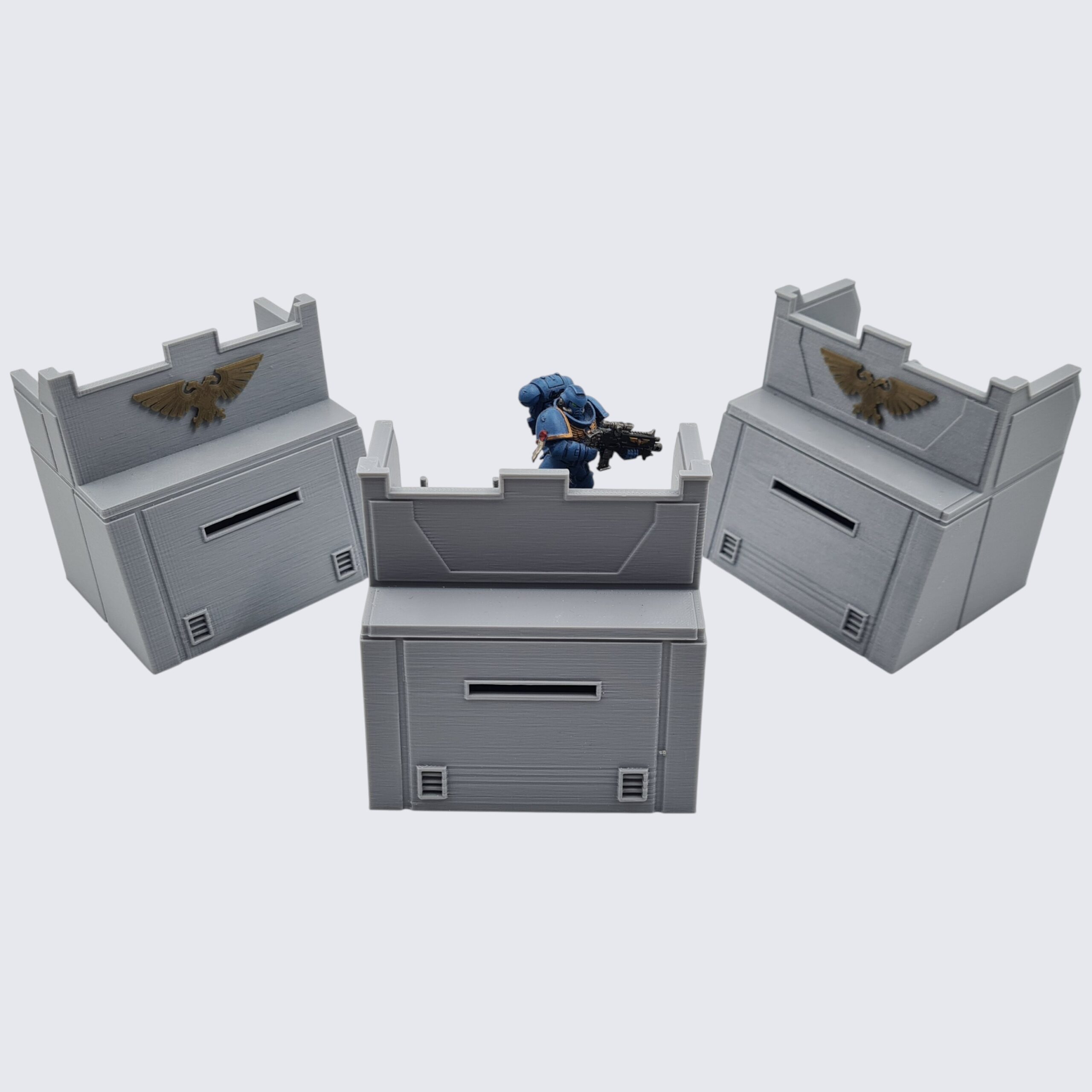 This Sale Product Listing is for 3 individual Sci-Fi Bunkers, suitable for a wide range of tabletop wargames such as Warhammer 40K etc.