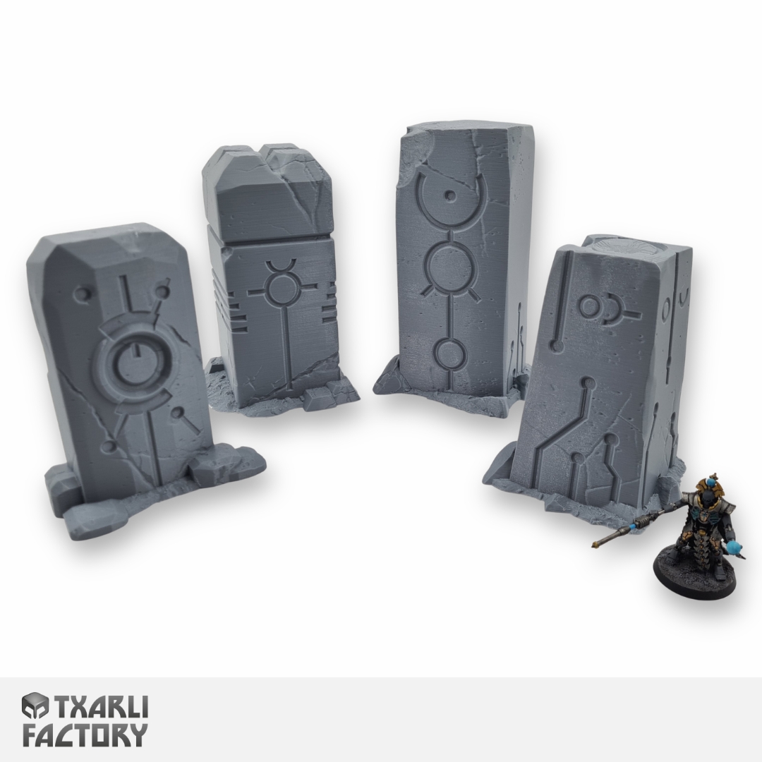 Xeno Monoliths are four varied standing stone sculpts. Combine with Xeno Menhirs & Xeno Cube sets for natural variation when building your battlefields.